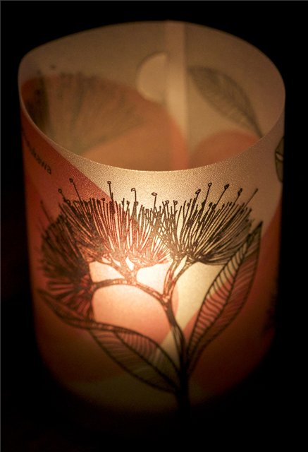 ニュージーランドを代表する植物がモチーフになっている、ティーライトキャンドルを使ったランタンです。ランタンは耐火性のある曇りPVCプラスティックで作られており、付属のティーライトキャンドルをセッティングすれば、すぐにろうそくのふんわりとした灯りとその光で浮かび上がるデザインをお楽しみいただけます。3種類をご用意しています。