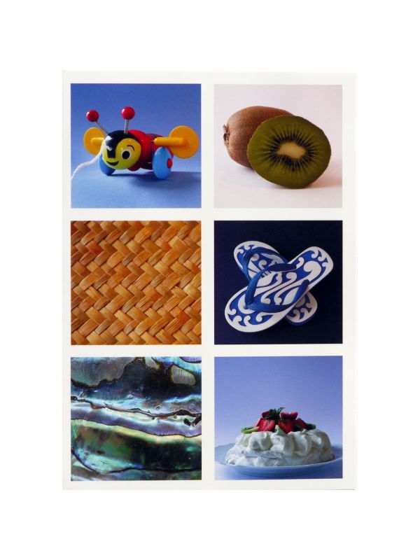 バジービー、マオリのフラックス織り、パウア貝、キウイフルーツ、ジャンダルにパブロバと、ニュージーランドといえば!のアイコンがずらりの素敵なカード。ブランク(空白)カードですので、多目的にお使いいただけます。